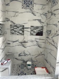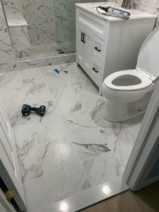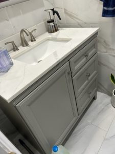 We completed a remarkable bathroom renovation project that gave the space a luxurious new look. Our team installed elegant marble and tile work, creating a sophisticated and timeless aesthetic. We added a new sit-in shower nook, providing both comfort and style. The project also included the installation of new vanity cabinetry and matching modern fixtures, enhancing the bathroom’s functionality and appeal. During the renovation, we discovered and repaired water leak damage to the interior structure, ensuring the home was safe and sound. This comprehensive update not only improved the bathroom’s appearance but also its overall integrity. Ready to transform your bathroom? Contact us today to start your renovation journey!